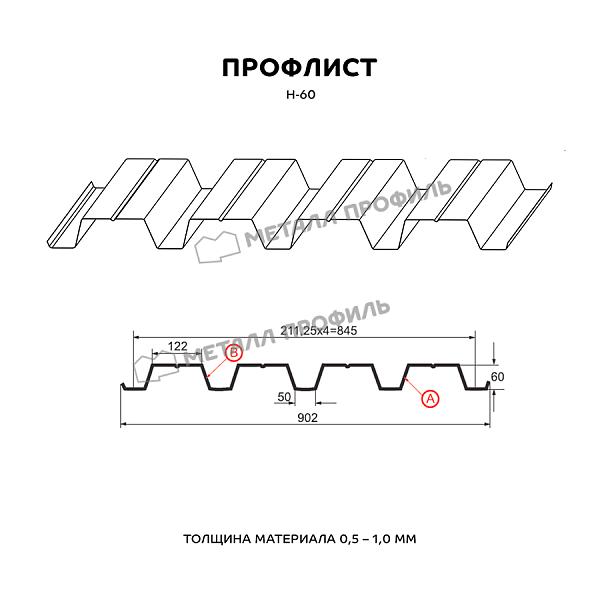 Профлист МЕТАЛЛ ПРОФИЛЬ Н-60х845-A (PURETAN-20-RR23-0,5) часто используется в Нижнем Новгороде для оформления профилированного листа. Представляет собой металлический оцинкованный лист с покрытием. Общая толщина стальной основы с цинковым и защитно-декоративным покрытием — 0.5 мм.После проката на специальном оборудовании сталь принимает волнообразный вид. Несущая способность профилированного листа на порядок выше плоского.